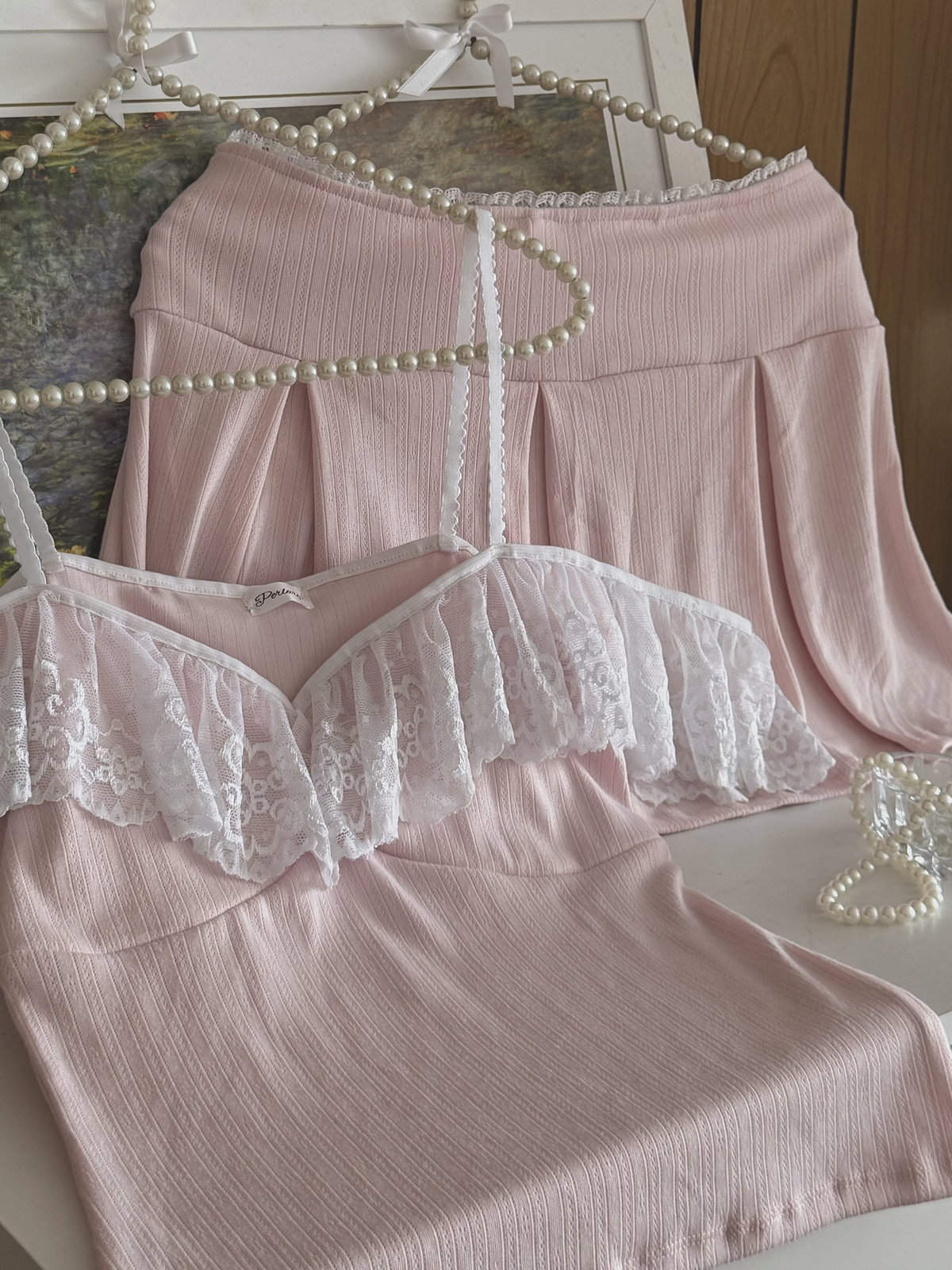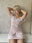 En el escote y breteles tiene detalles de puntilla ancha en el escote, mangas y espalda.