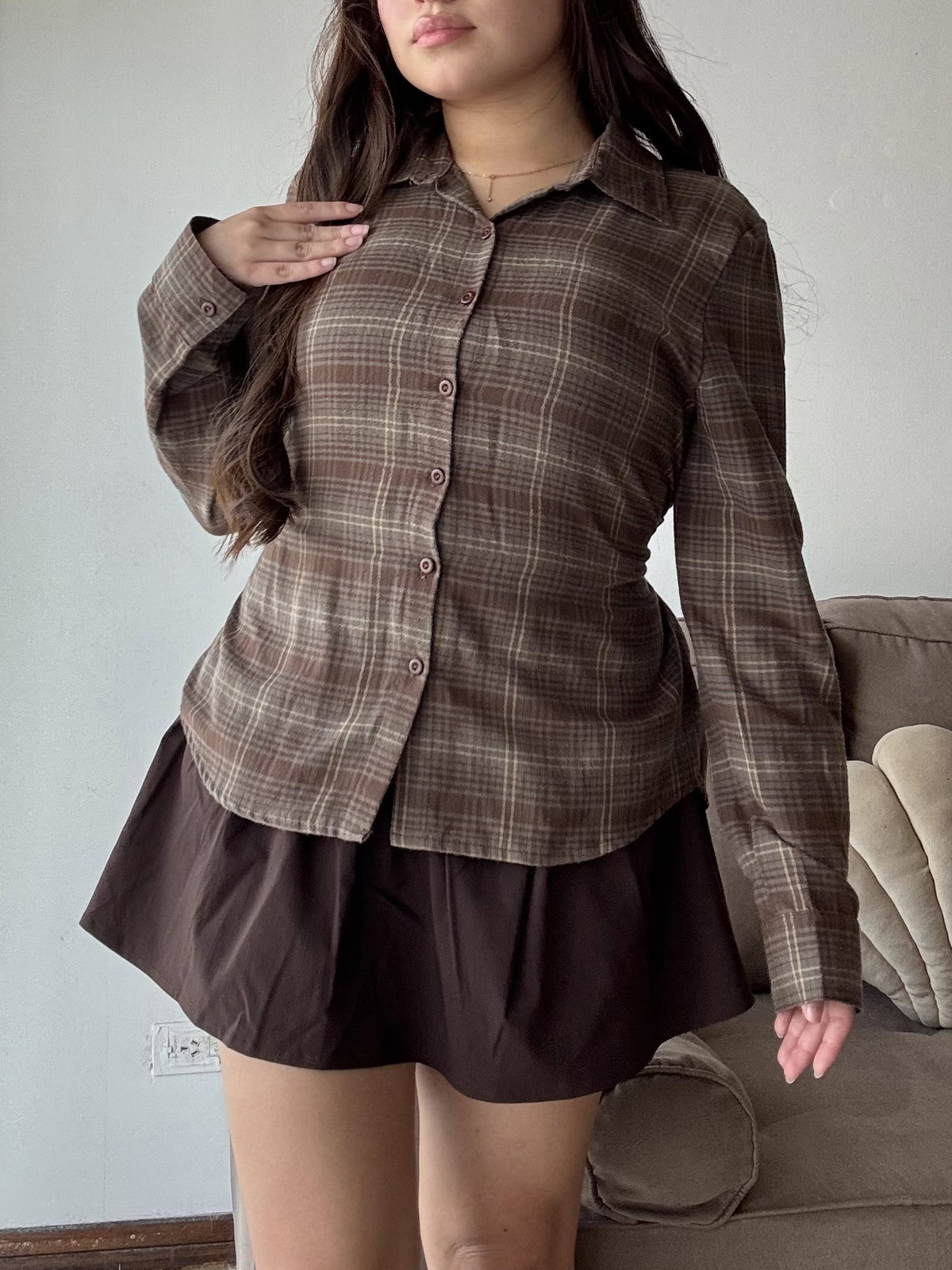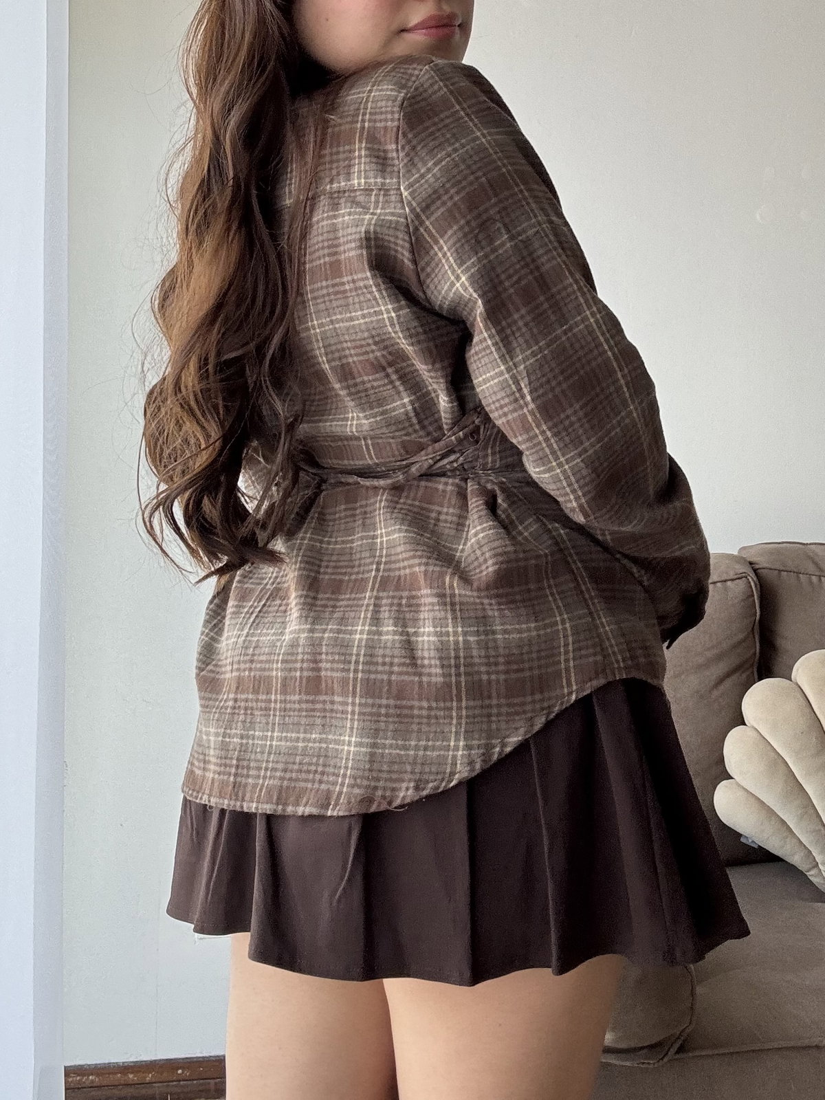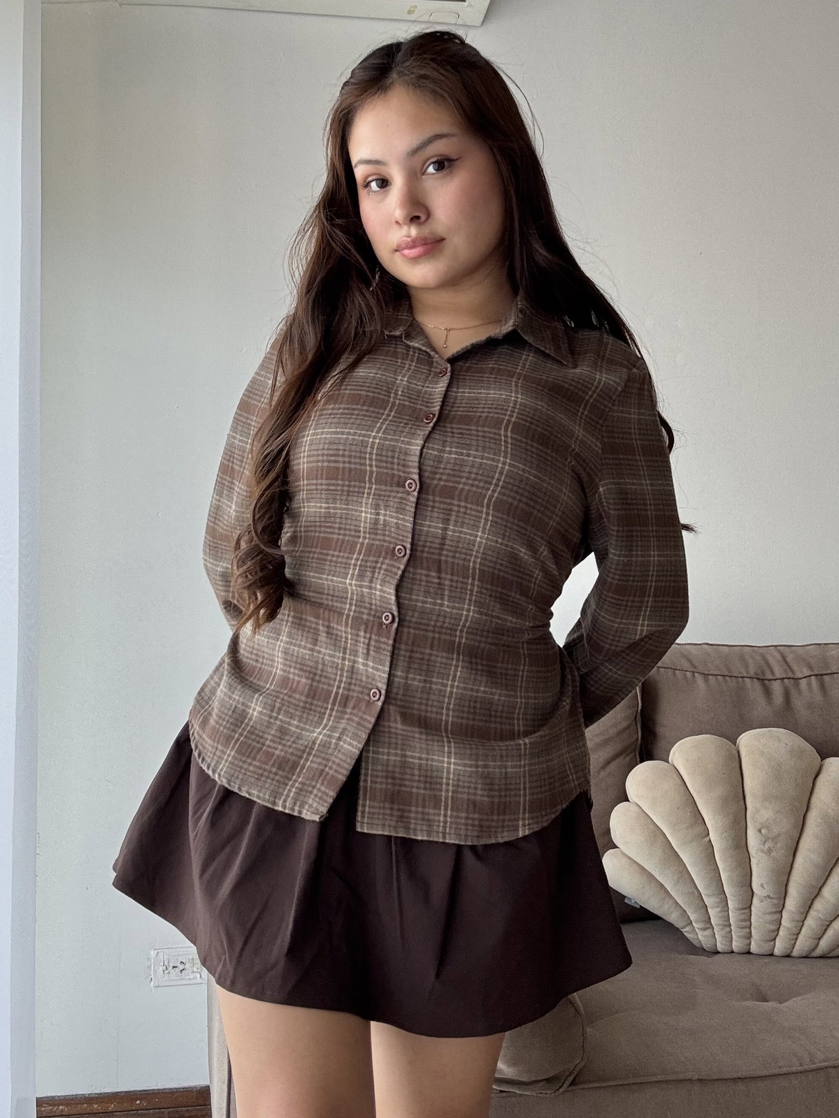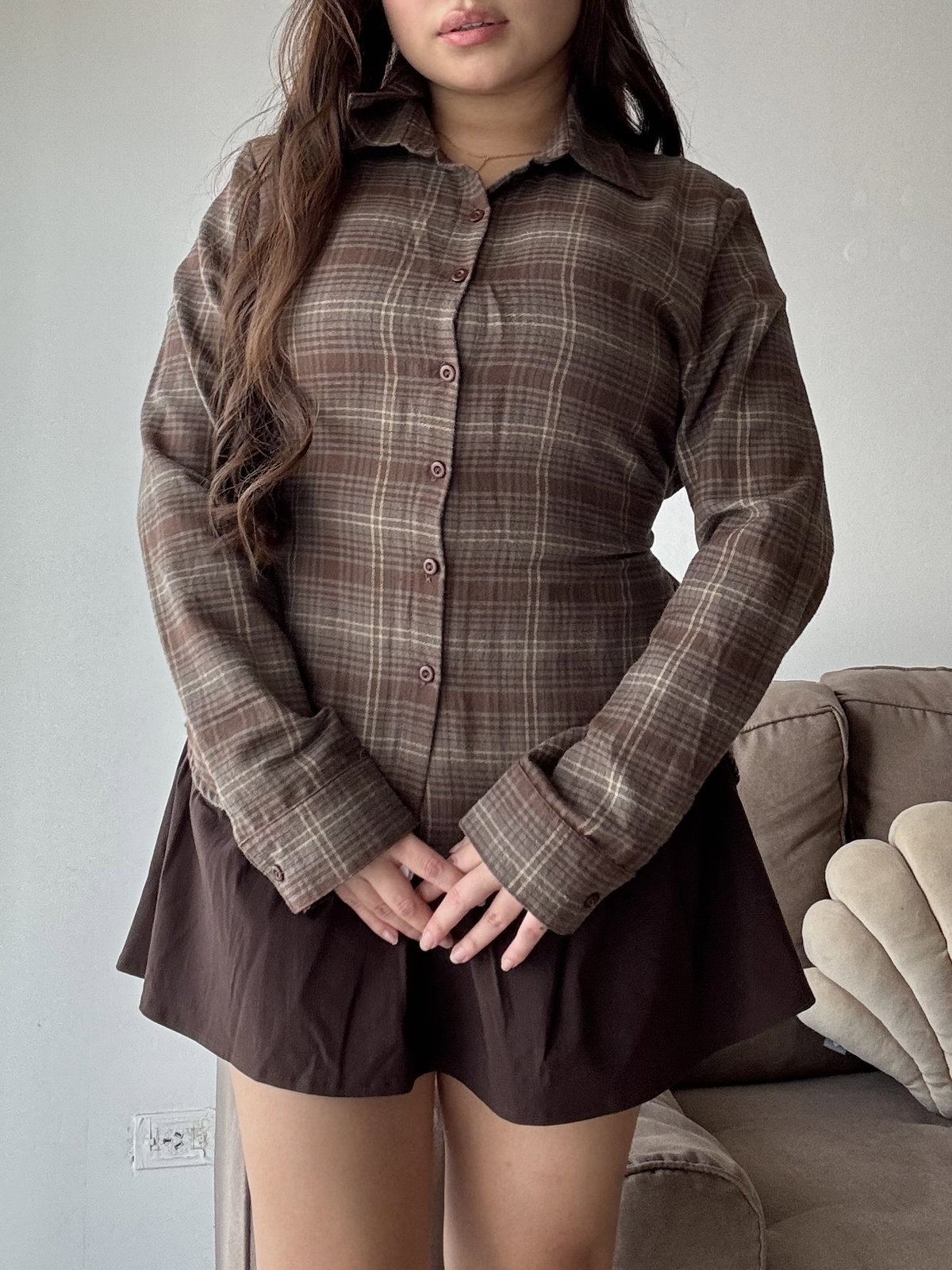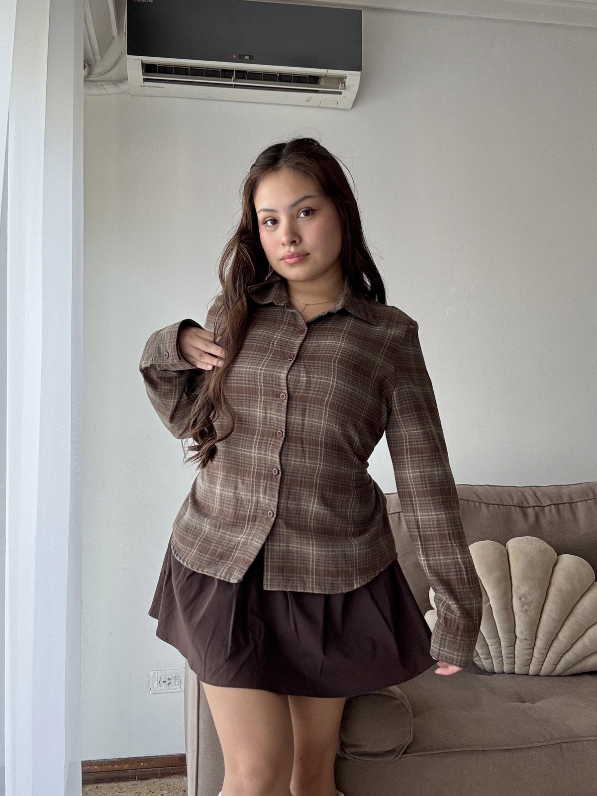 Camisa entallada con detalle en la espalda estilo corset. Podés llevarla suelta para un look más relajado o ajustarla al cuerpo con sus tiras regulables en la parte trasera, adaptándose a tu silueta.