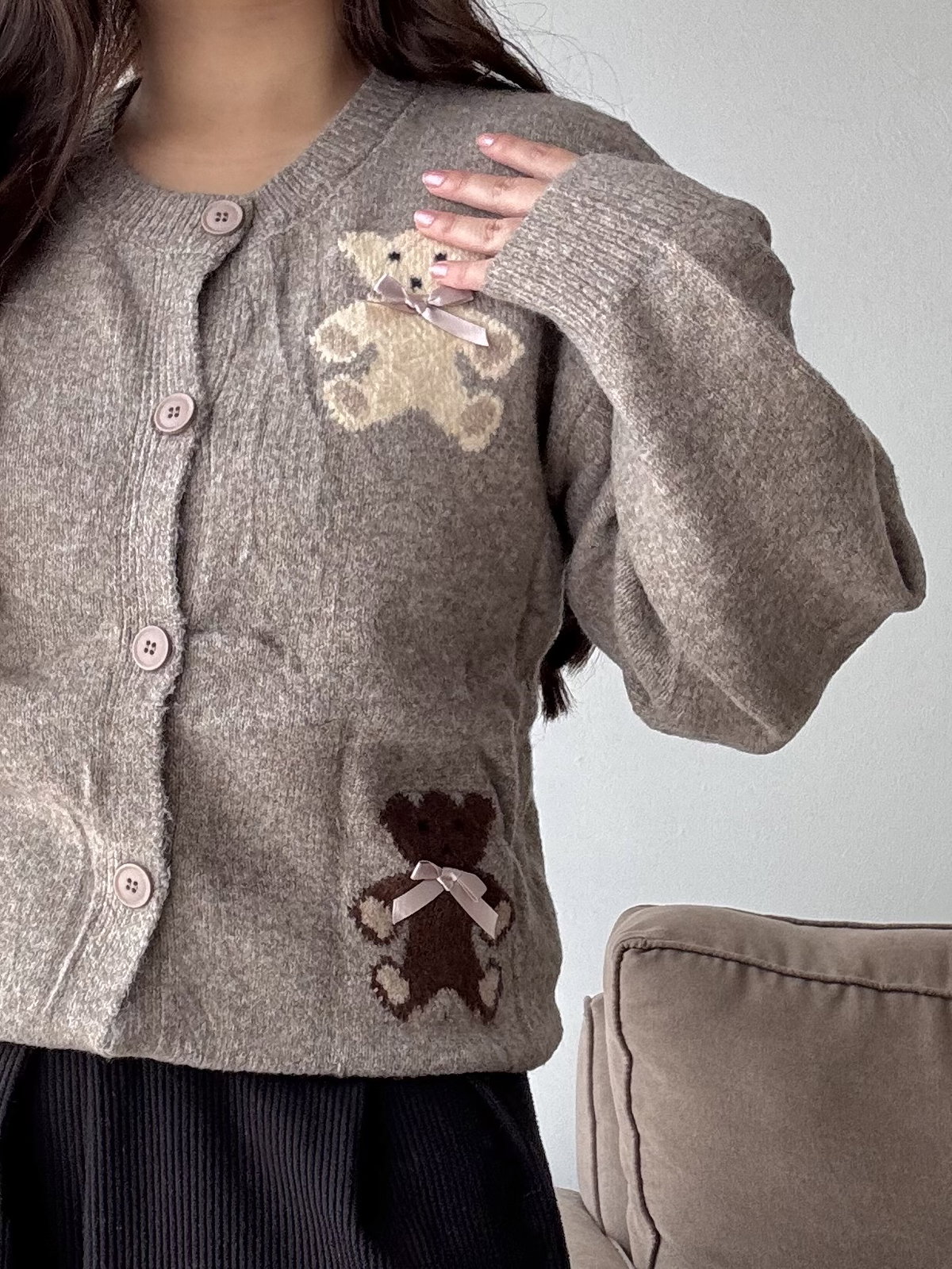 Cardigan importado de lana, con botones a tono, corte oversize.