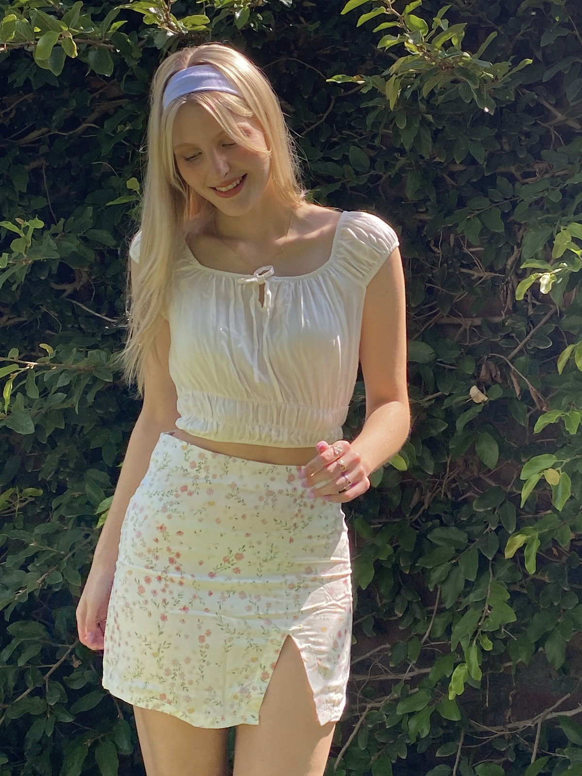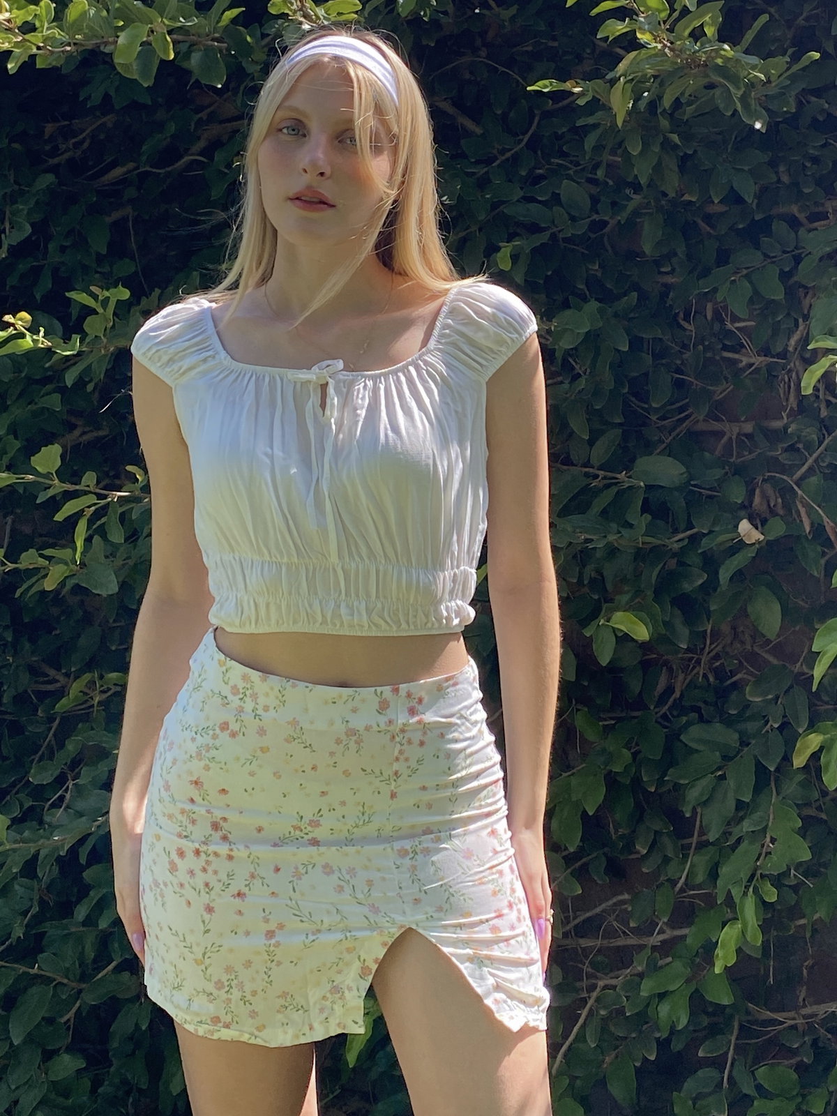Falda confeccionada en fibrana estampada, cuenta con cierre invisible lateral, y tajo pequeño inferior.