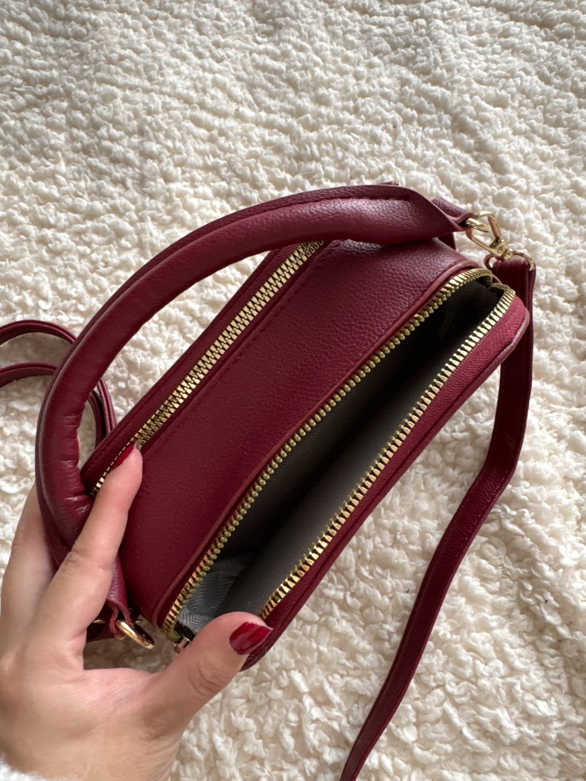 Para mantenerla linda por más tiempo, limpiá la cartera con un paño suave apenas húmedo y jabón neutro. Evitá el uso de alcohol, lavandina o productos abrasivos. Podés hidratarla ocasionalmente con una pequeña cantidad de crema neutra, sin sobrecargarla, y guardarla en una bolsa de tela, preferentemente rellena, para conservar su forma.