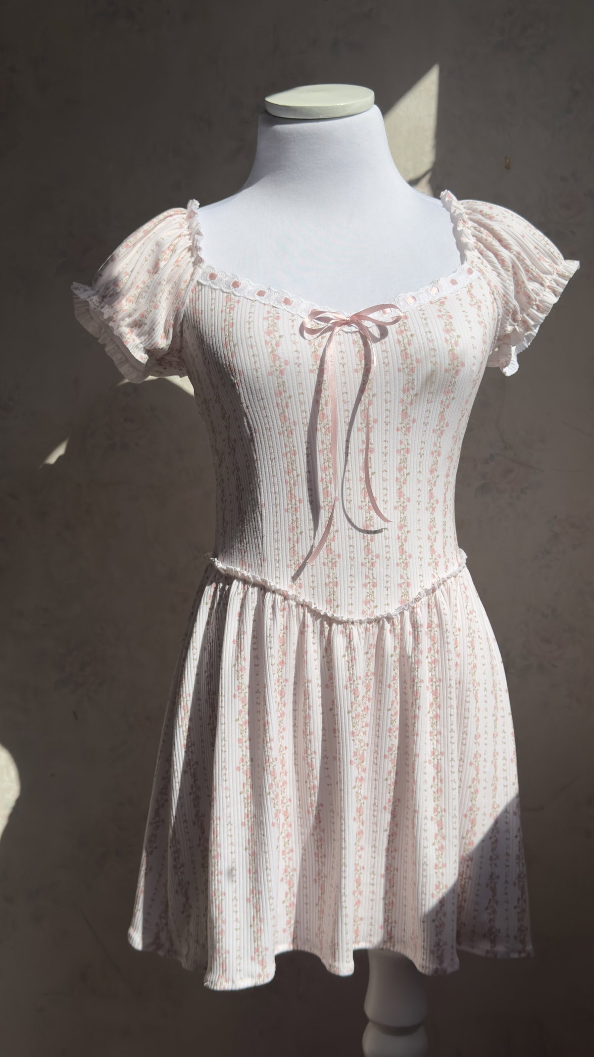 Vestido confeccionado en morley, tela super elastizada. Tiene corte princesa y falda fruncida para dar el efecto acampanado.