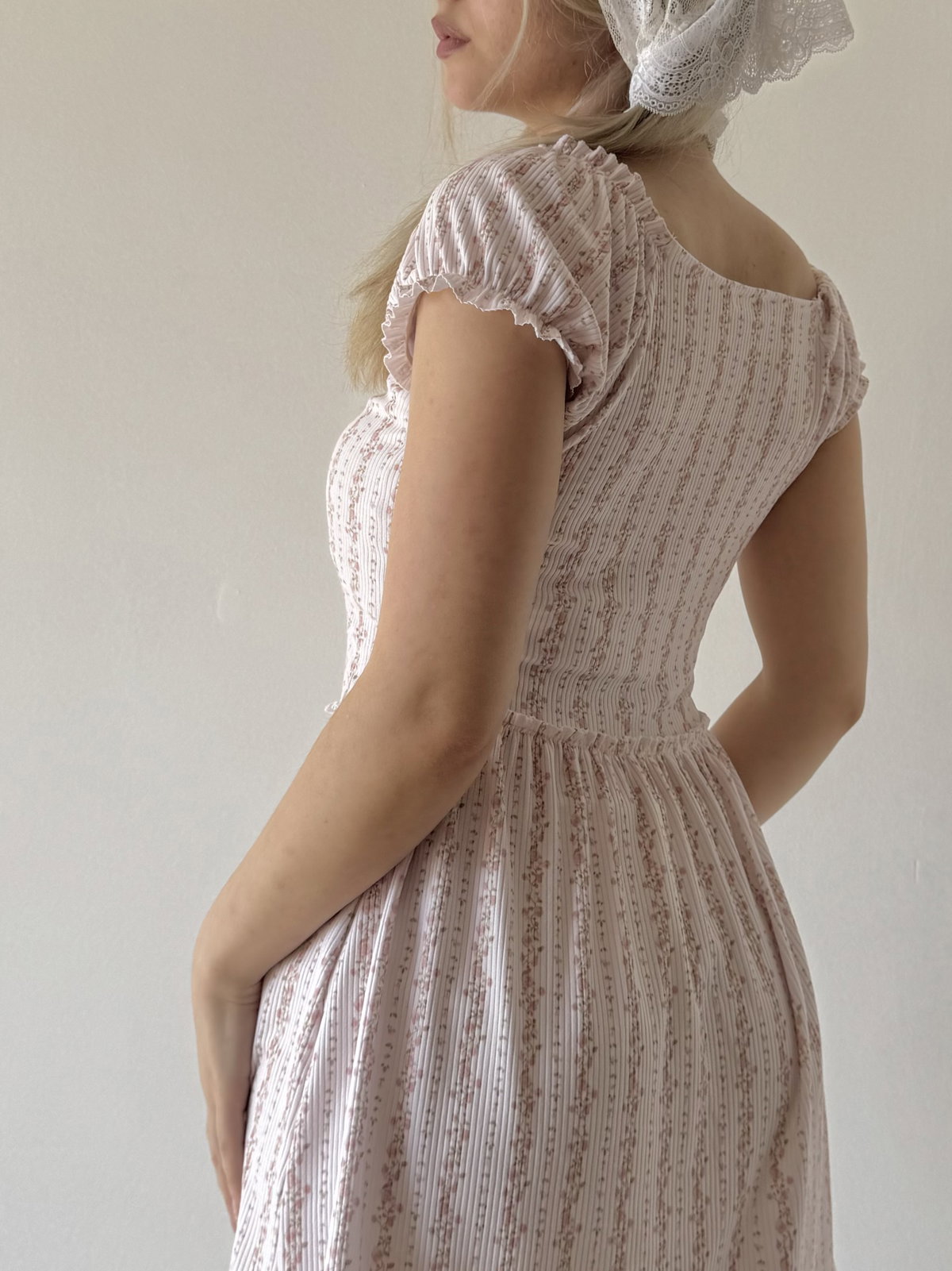 Mangas: corte princesa, fruncidas con elástico fino que no aprieta, ajustando lo justo para dar el efecto abullonado.