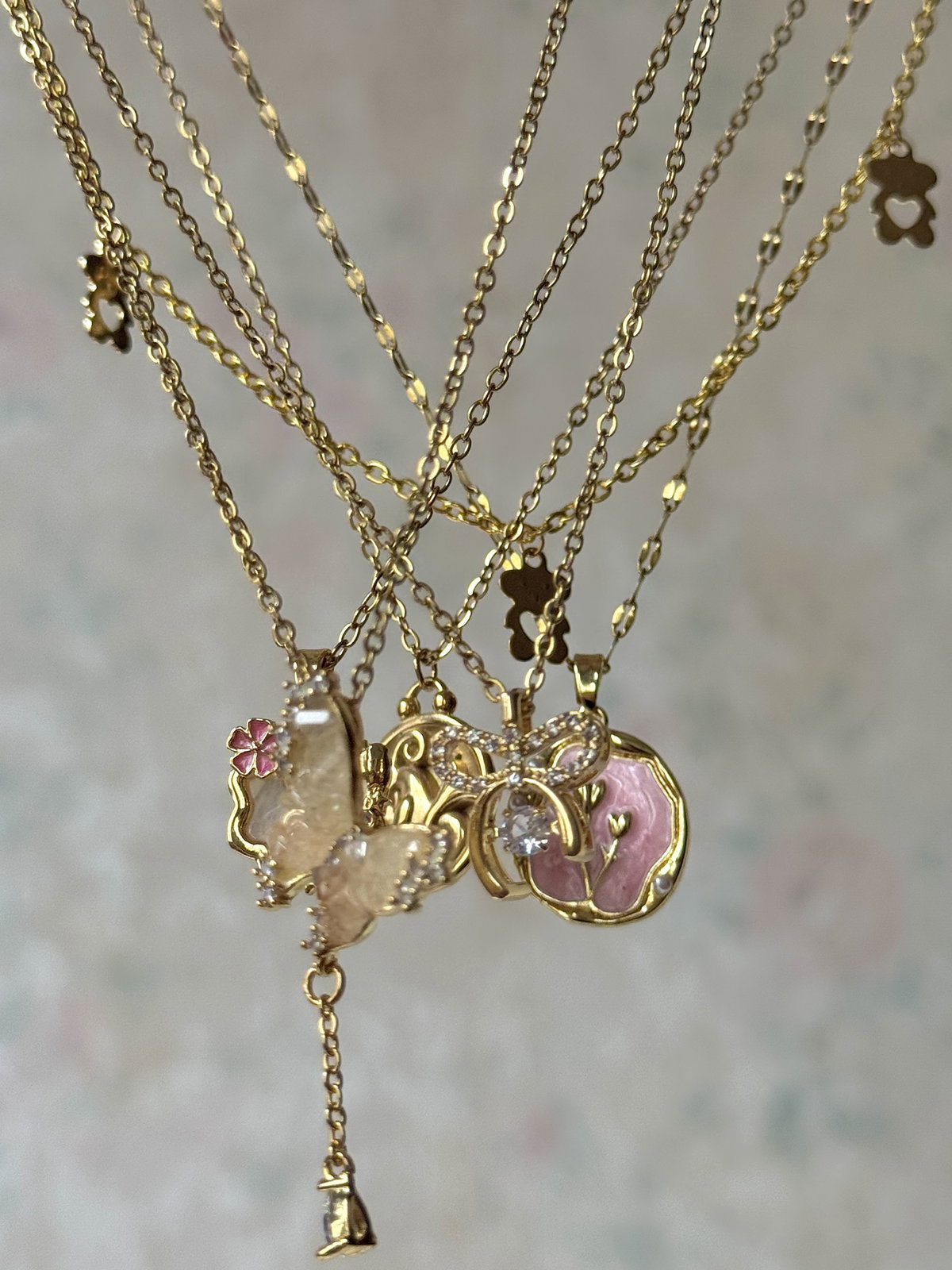 Nuestros collares de acero quirúrgico dorado están pensados para acompañarte todos los días. Para mantener su brillo por más tiempo, te recomendamos evitar el contacto directo con perfumes, cremas o agua y guardarlos en un lugar seco cuando no los uses. Una limpieza suave con un paño seco es suficiente para que sigan viéndose lindos🌸