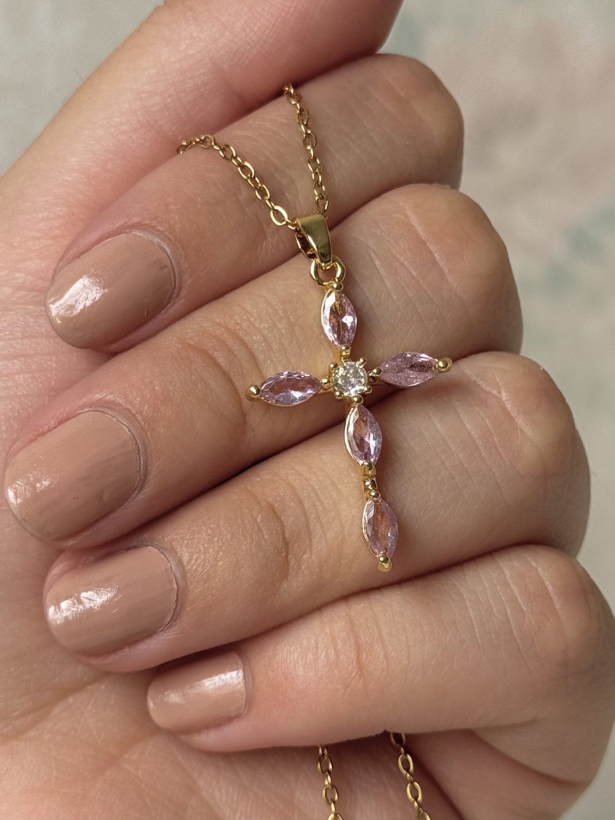 Collar Pink Cross - Acero