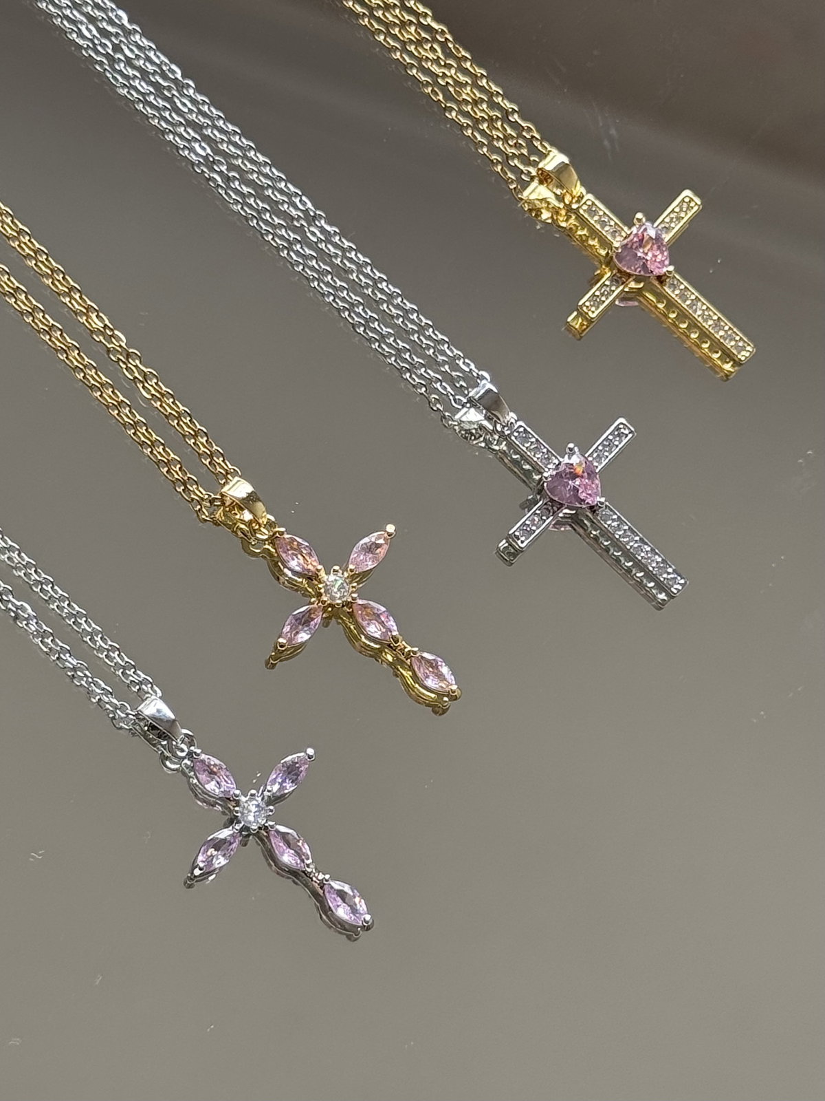 Collar Heart Cross- Acero