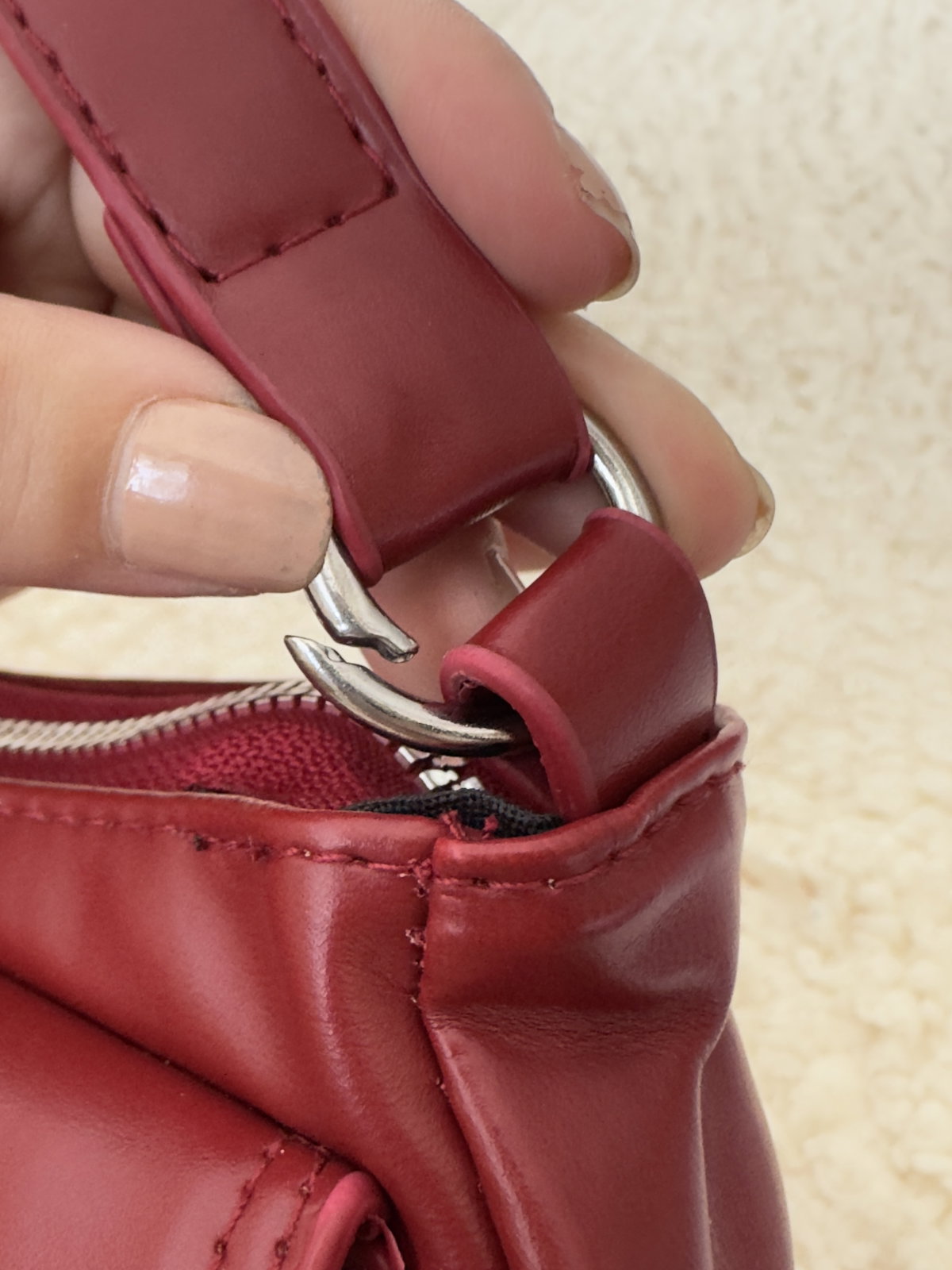 Para mantenerla linda por más tiempo, limpiá la cartera con un paño suave apenas húmedo y jabón neutro. Evitá el uso de alcohol, lavandina o productos abrasivos. Podés hidratarla ocasionalmente con una pequeña cantidad de crema neutra, sin sobrecargarla, y guardarla en una bolsa de tela, preferentemente rellena, para conservar su forma.