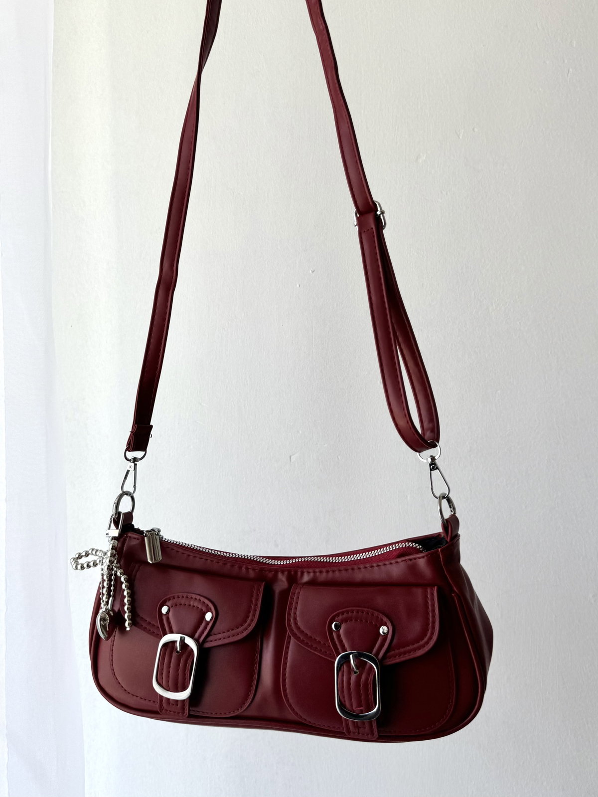 Mini bag y morral de cuero sintético con cierre y herrajes metálicos. Cuenta con 2 bolsillos externos y su interior está forrado. Incluye dos correas intercambiables, con hebilla con abertura de gancho (foto 5), se puede usar como morral (regulable) y como shoulder bag, ideal para uso diario.