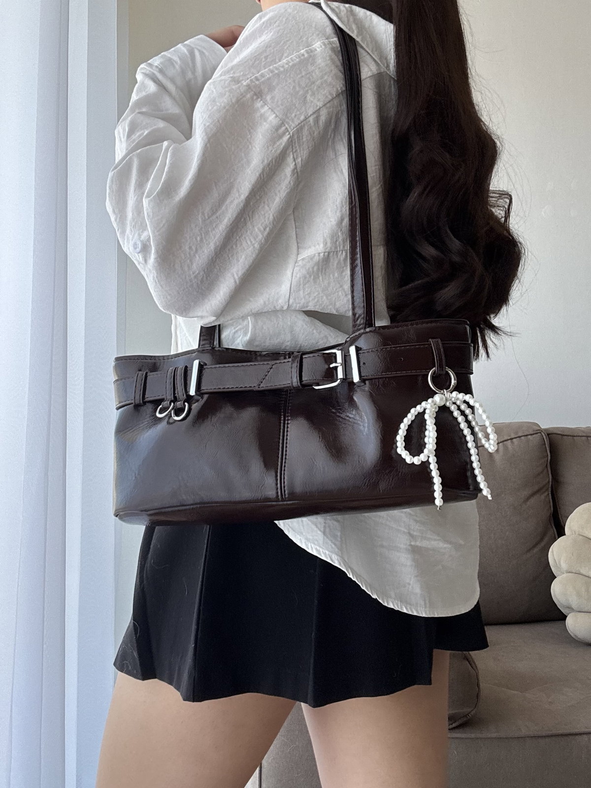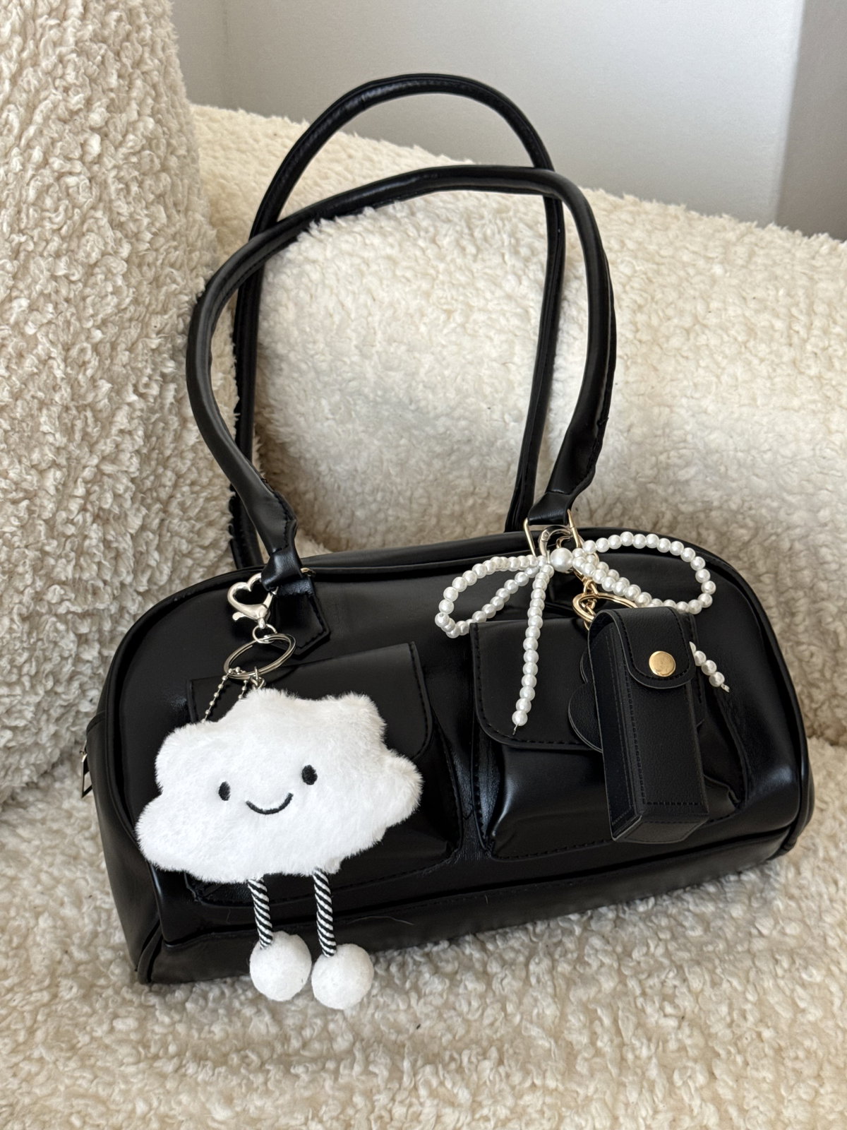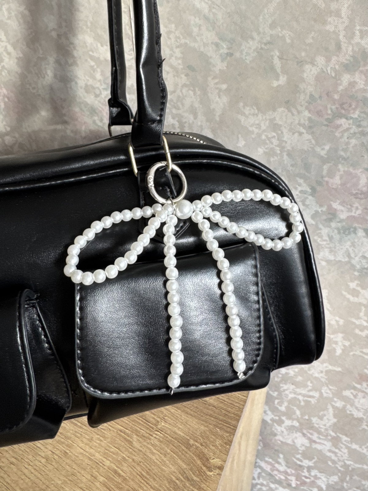 Llavero o charm de perlas.