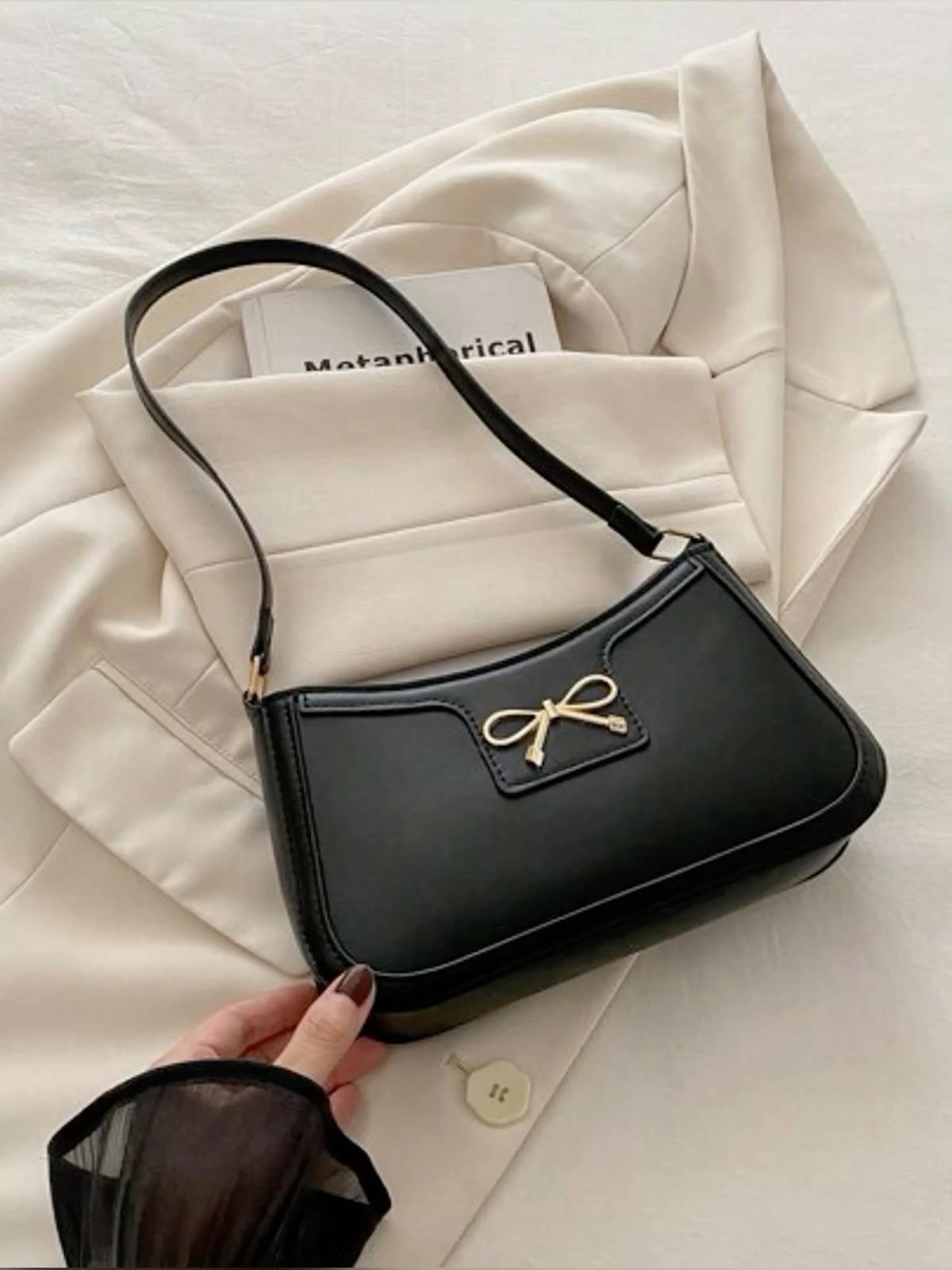 Mini bag de cuero sintético con herrajes metálicos, cierre de plástico y no tiene forro interno. Incluye tira al hombro no regulable, ideal para uso diario.