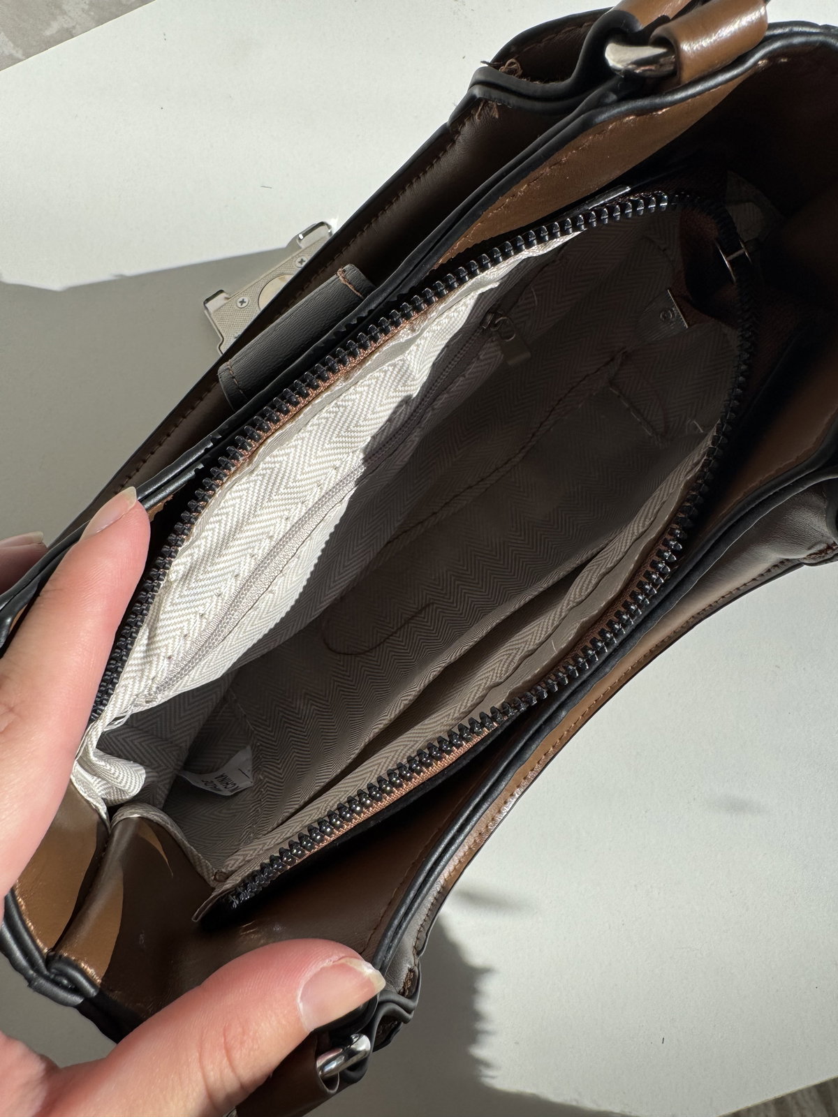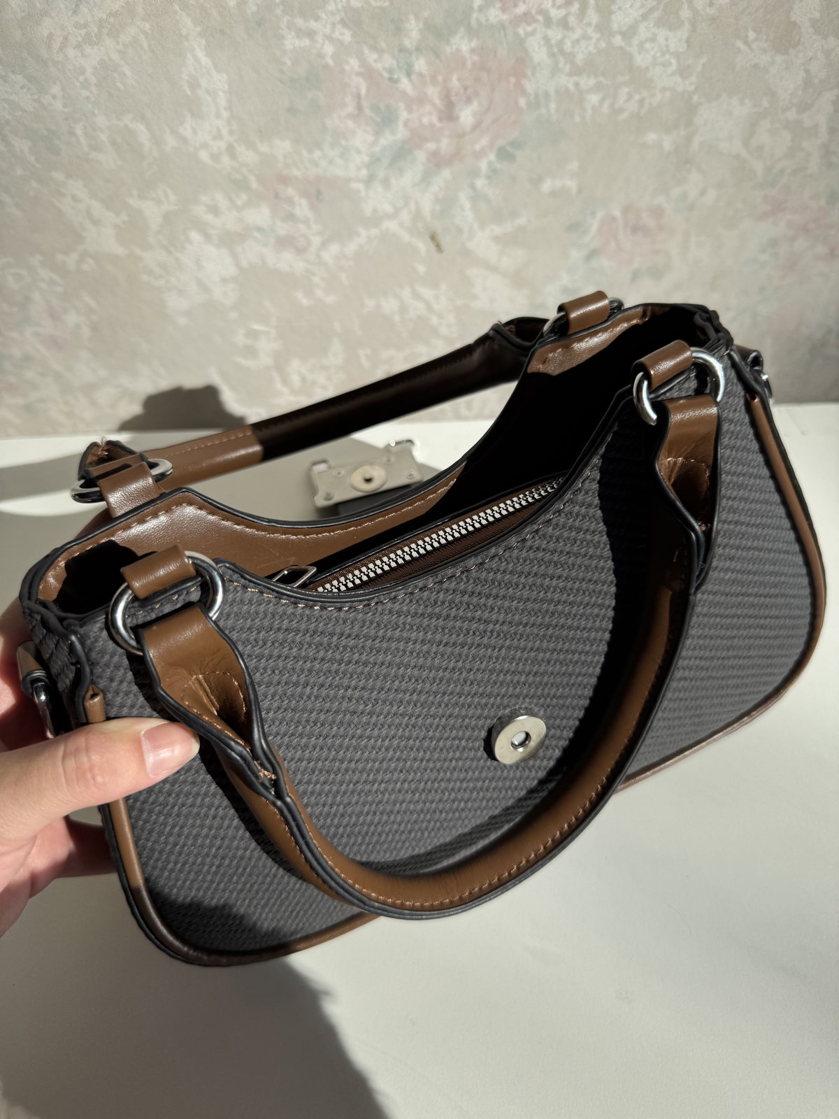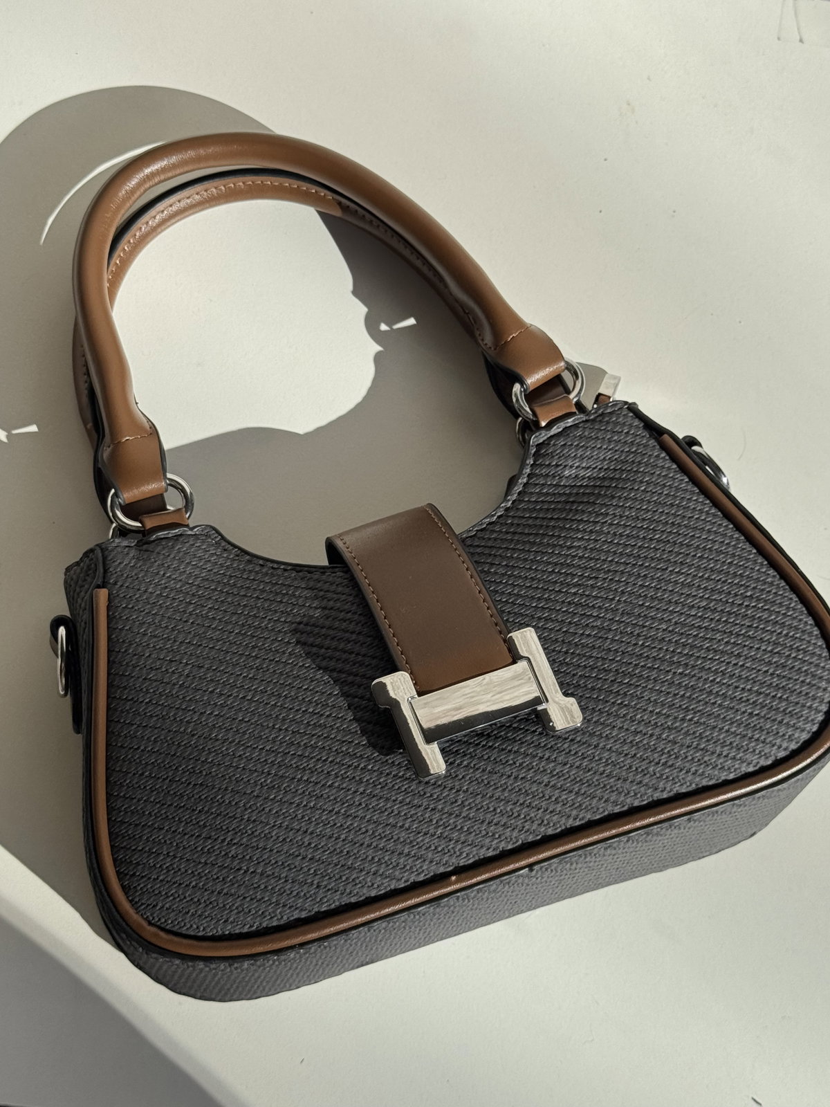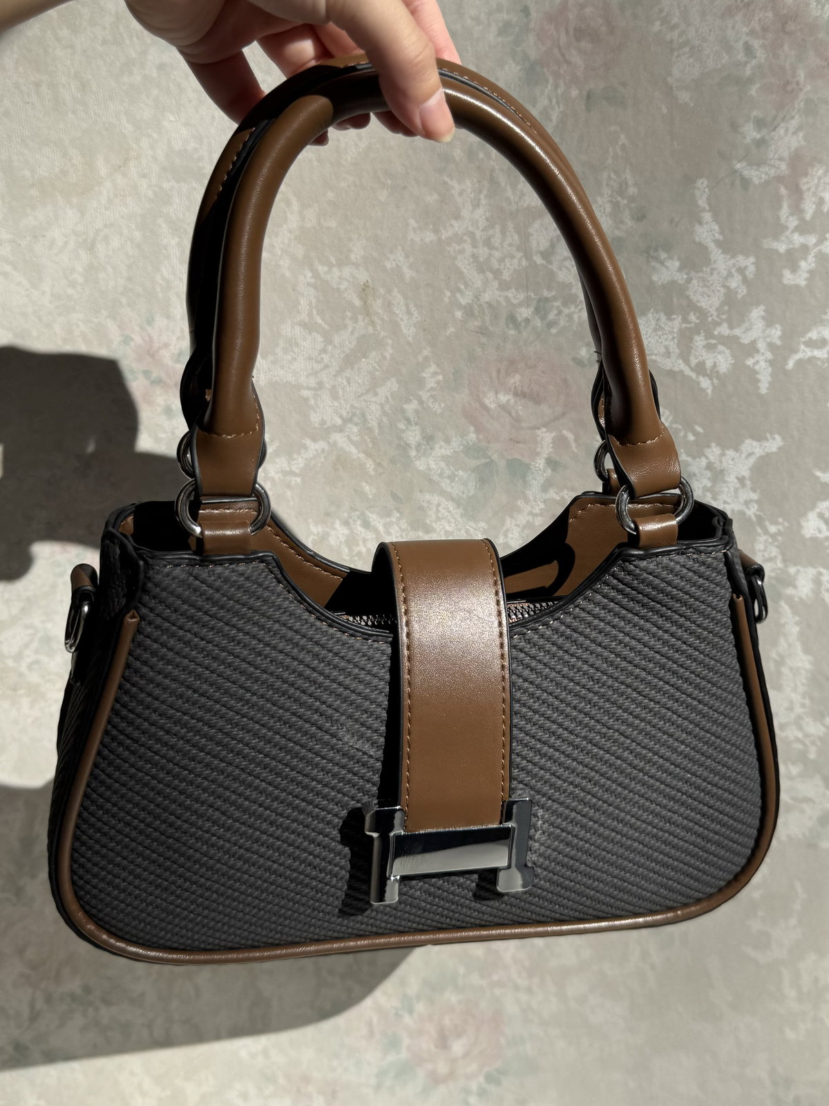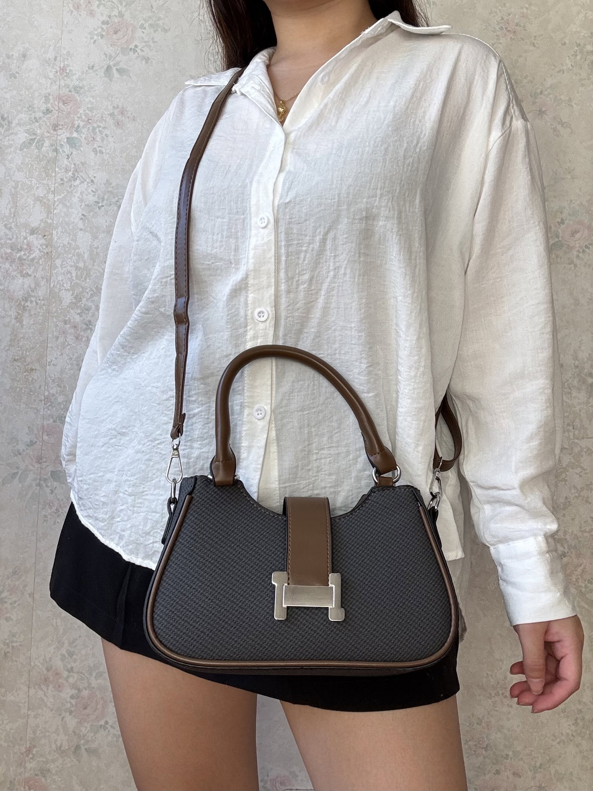 Mini bag de cuero sintético con herrajes metálicos, cierre de metal y con forro y bolsillos internos. Incluye tira al hombro regulable, ideal para uso diario.