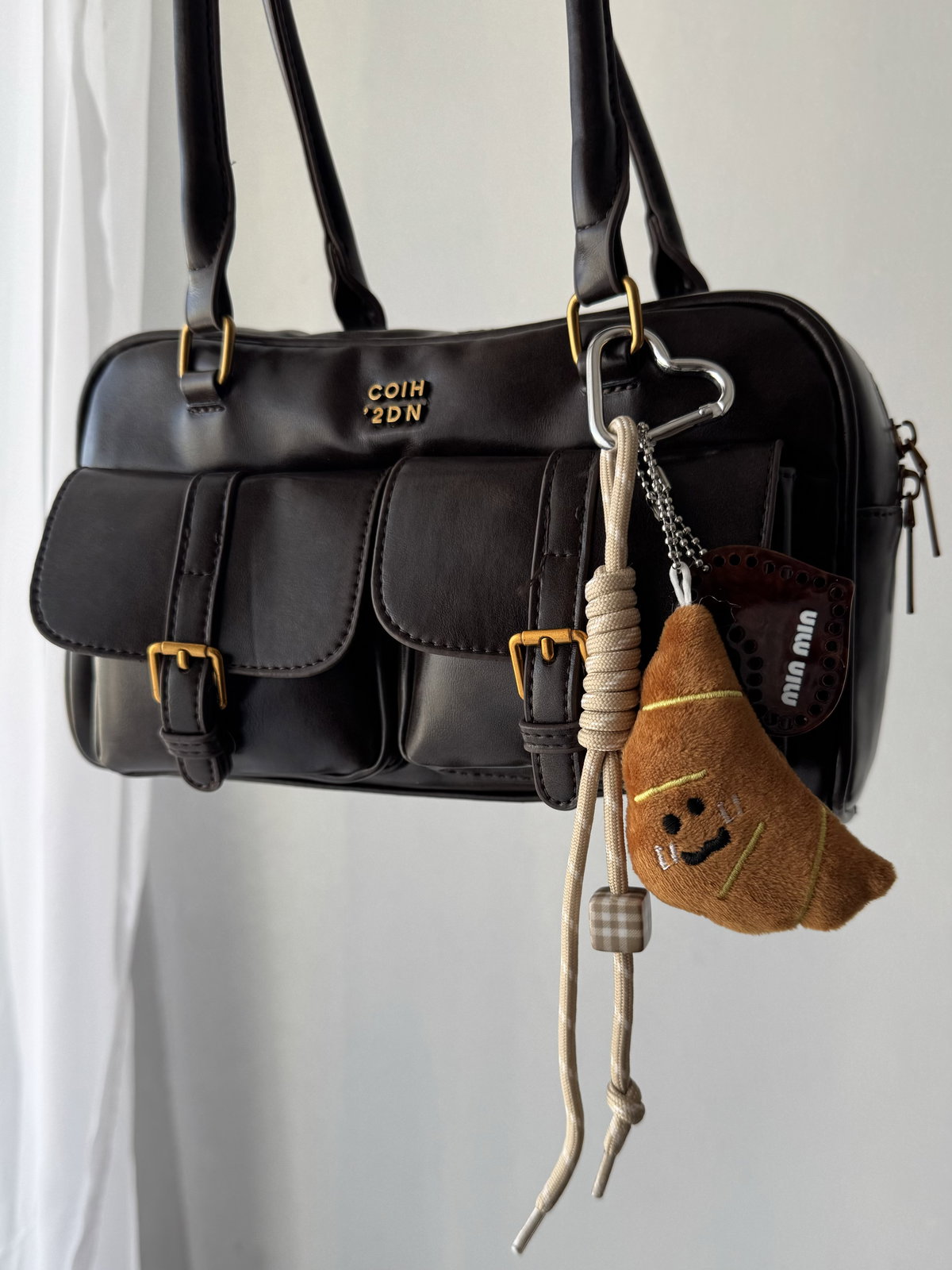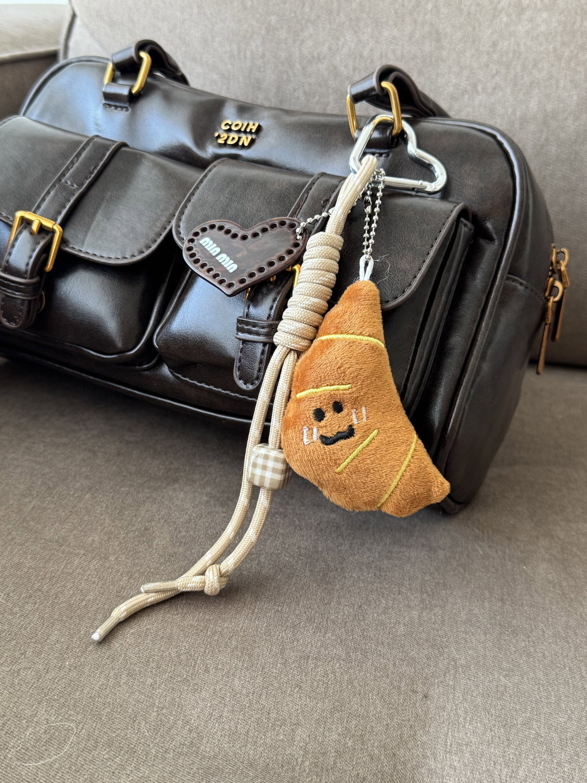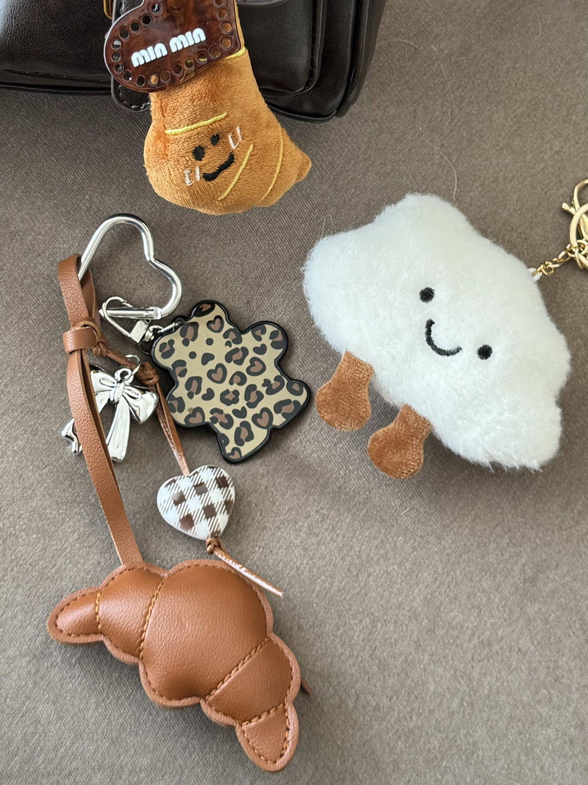 Llavero o charm 3 en 1: medialuna de peluche, corazón y soguita con dado cuadrille. Los charms se pueden usar por reparado.