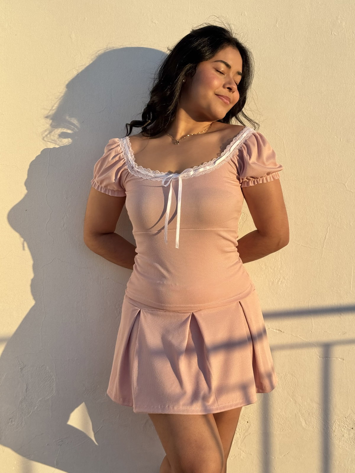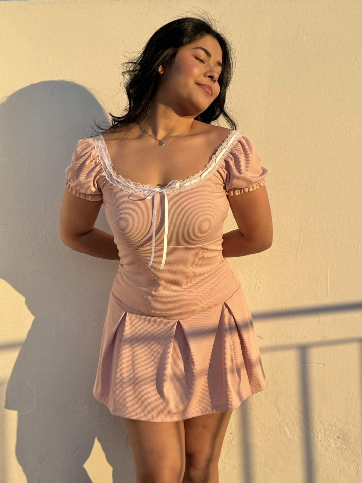 Blusa confeccionada en algodon con lycra y morley de algodon. Tiene manguitas princesa fruncidas con elastico, posee puntilla en el cuello con detalle de cinta de raso para hacer moño. Tiene doble tela en el pecho.