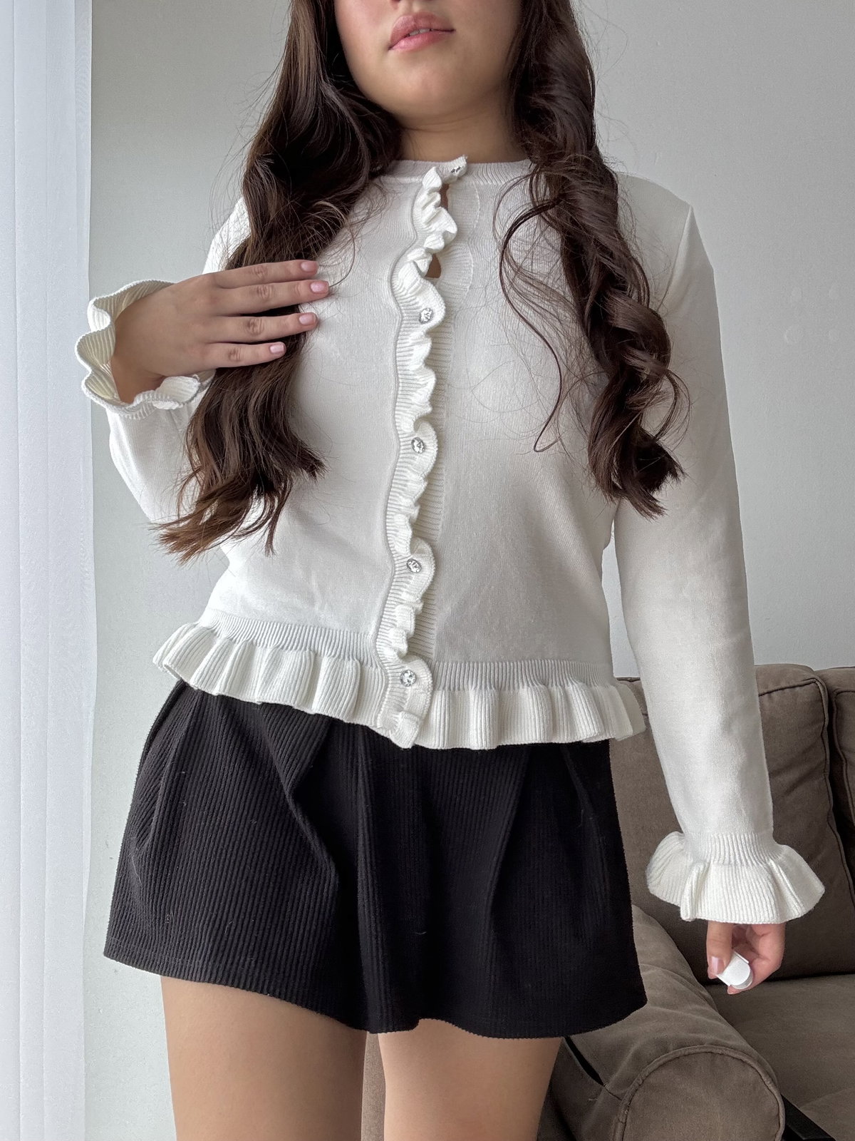 Saco de lanilla Bremer, muy suave al tacto y de excelente calidad, posee botones brillanes. Con volados en sus terminaciones.