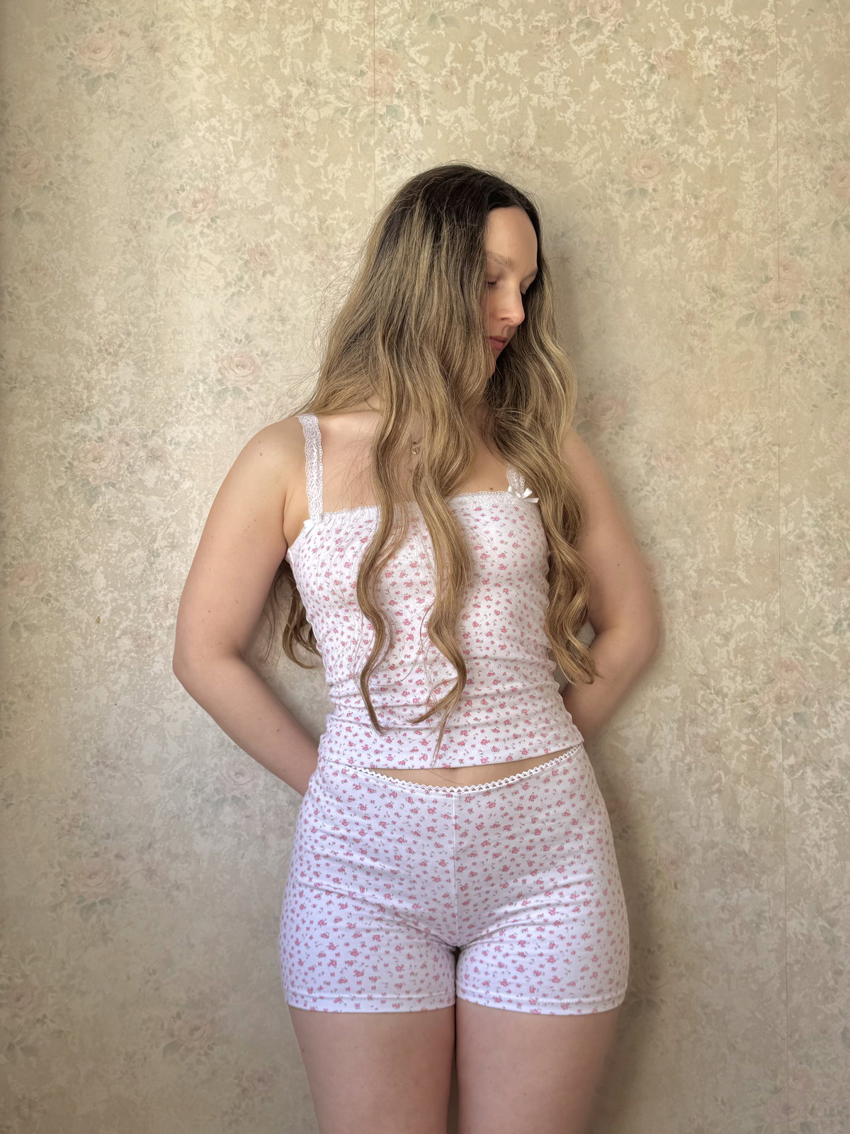 Short confeccionado en algodón con lycra premium, elastizado y fresquito. Con estampado floreado, tiro medio y detalle de picot en la parte superior.