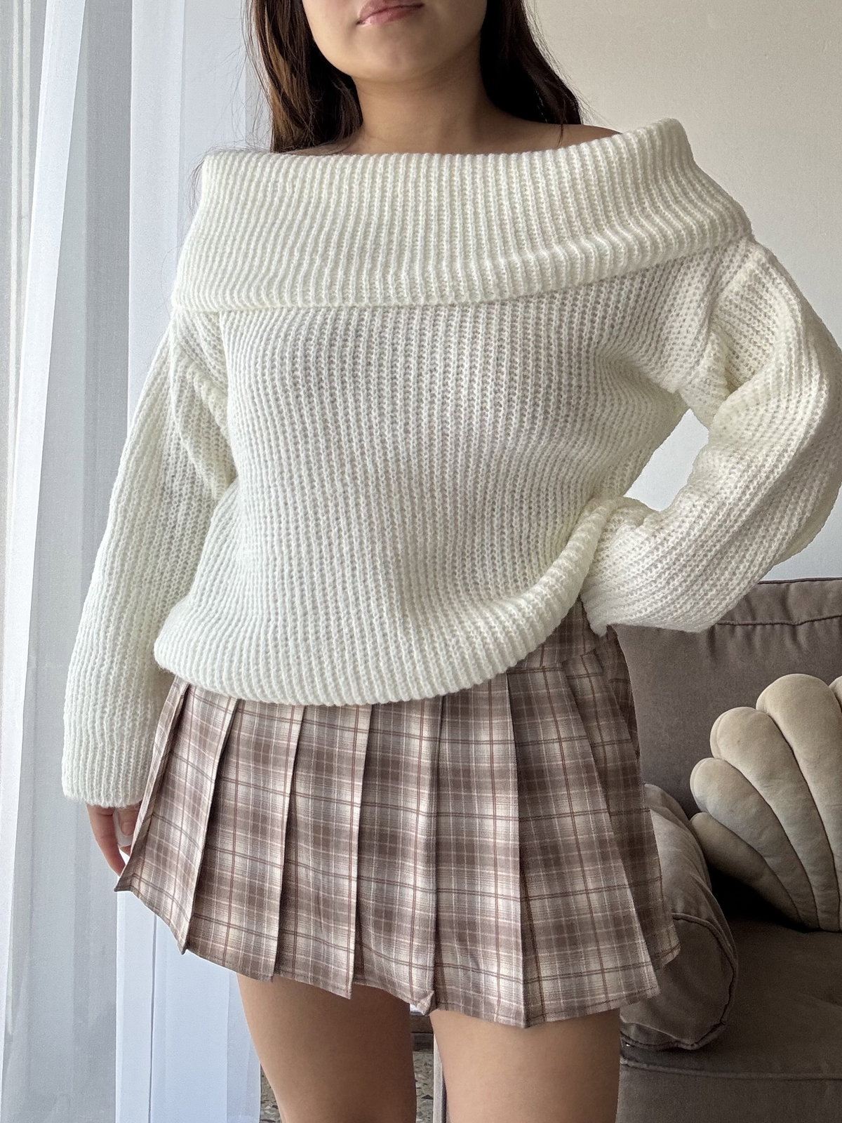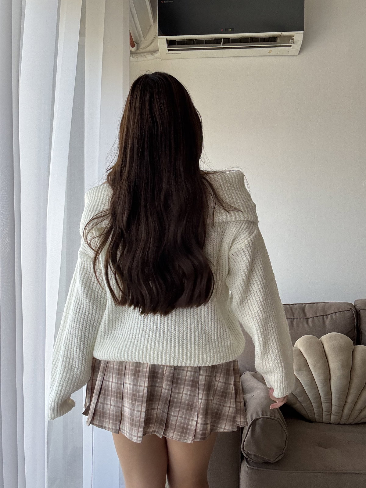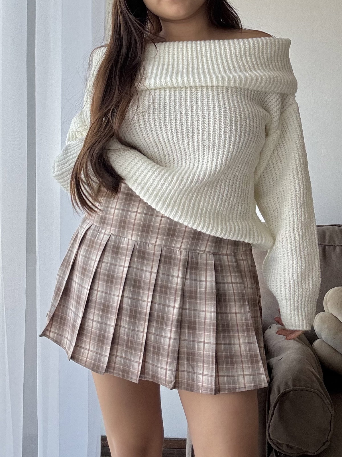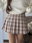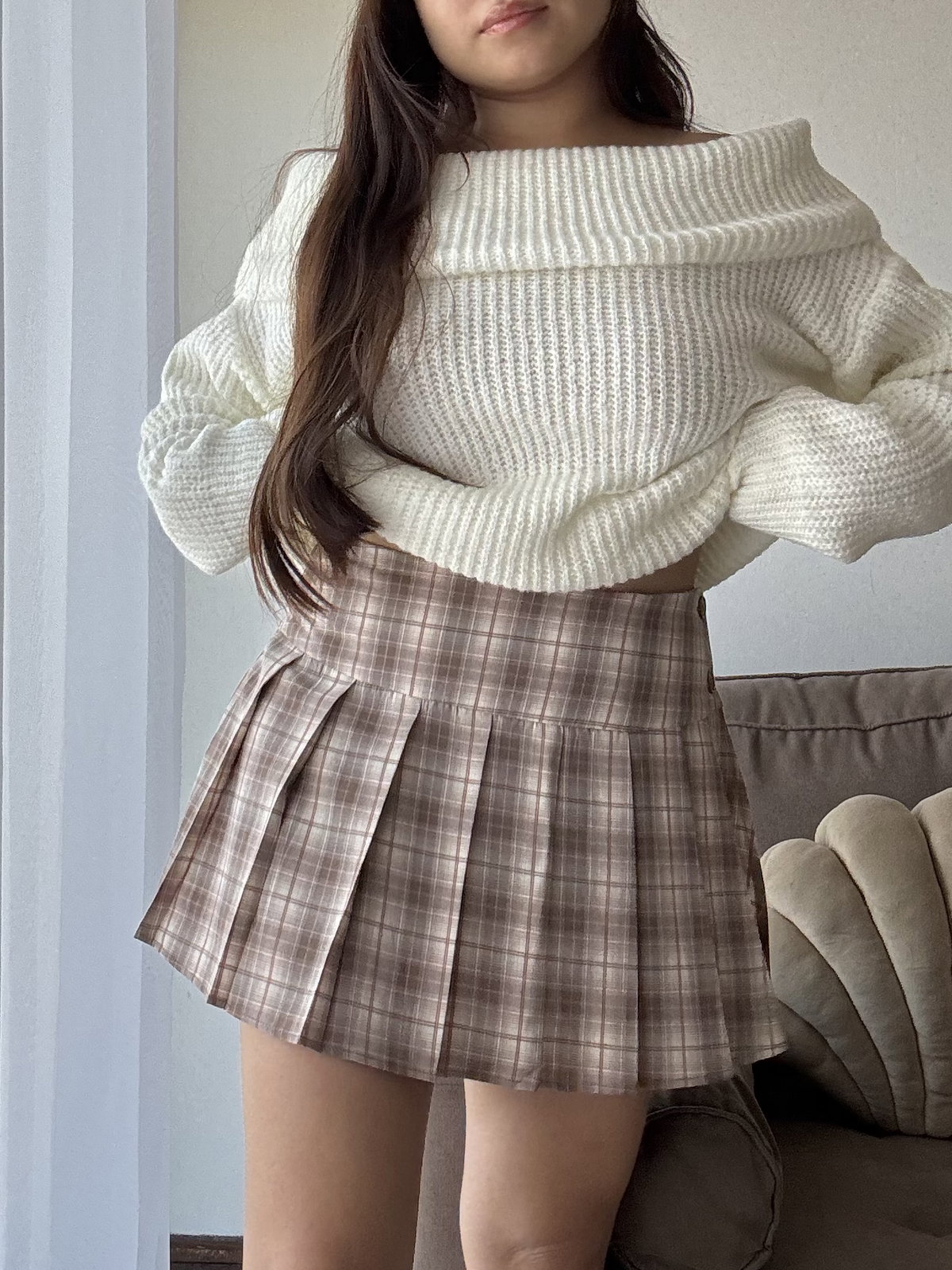Skort tableado (falda con short interno) confeccionado en tartan tono chocolate. Cuenta con cierre lateral y detalle de botones en el lateral opuesto.