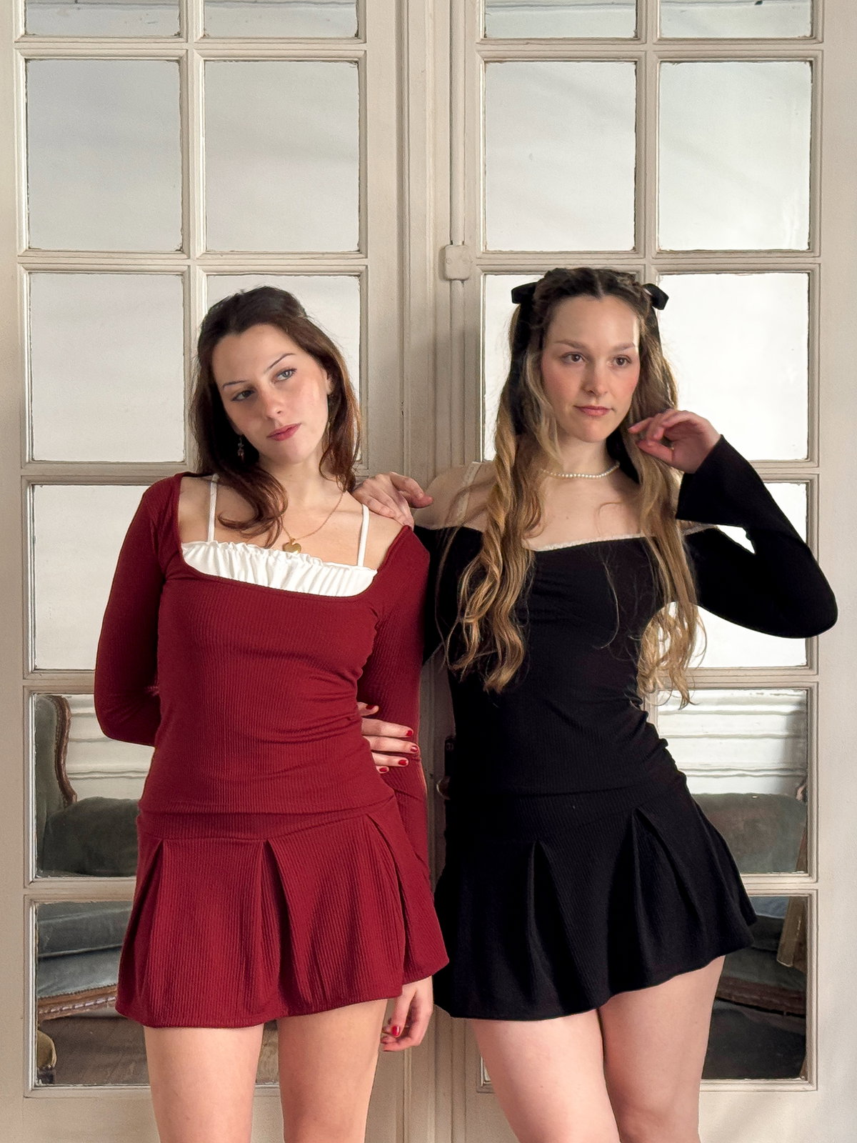 Conformado por una falda con pinzas superiores, que generan vuelo y volumen. Y un short interno para que estes comoda siempre. En la cintura tiene detalles de picot fantasia color crema, no marca ni aprieta, ajusta lo justo. Sin duda el skort pensado por una chica para otra chica.