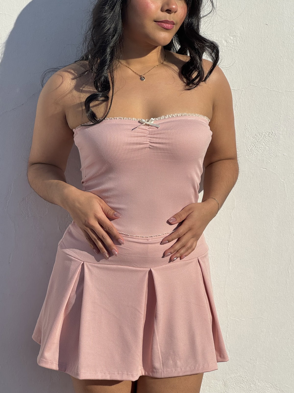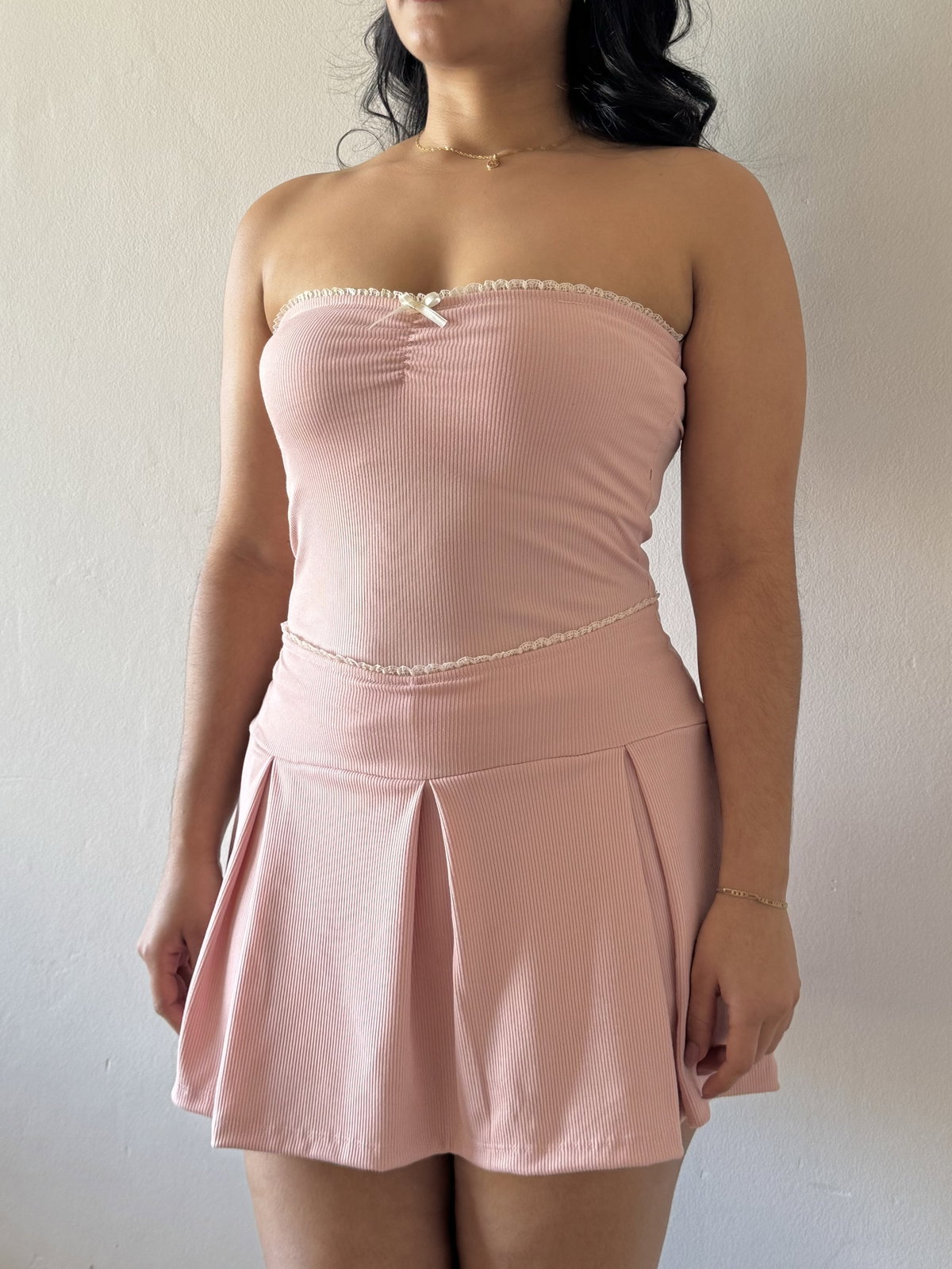 Top confeccionado en morley algodon , elastizado y fresquito. Color rosa Dior (rosa viejo claro, el color puede variar entre pantallas), sostén en la parte delantera tiene doble tela, con detalle de picot fantasia color crema en la parte superior, frunce en el medio, y detalle de moñito a tono.
