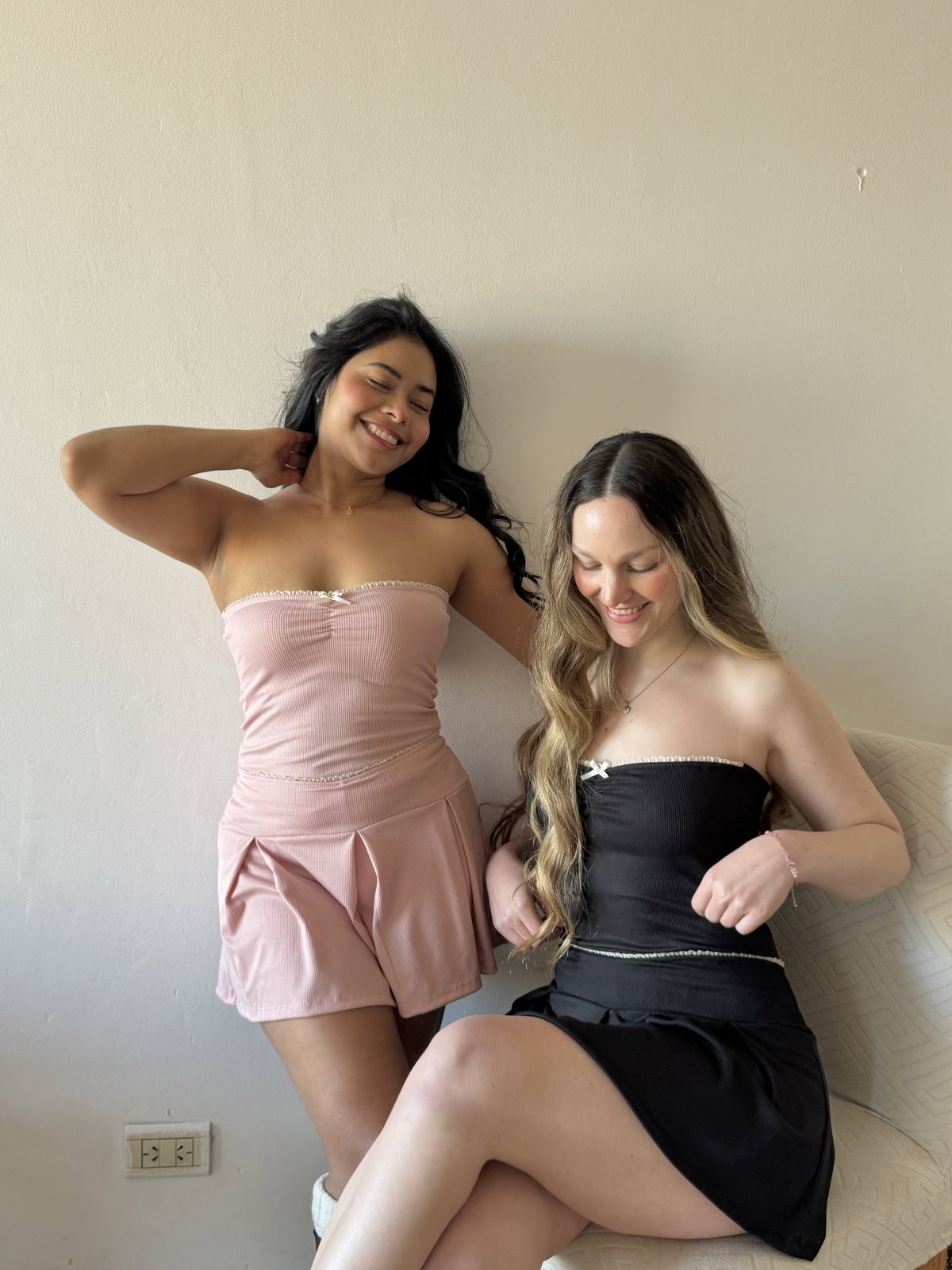 Tienes la opcion de colocarle breteles de picot el mismo que se utilizó para los detalles del top , sin costo. Al momento de hacer tu compra haznos saber en la parte de “notas” si deseas agregarlo.